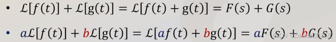 如下为拉普拉斯变换的线性特性,其中线性变换和线性组合的次序可以交换