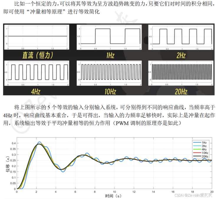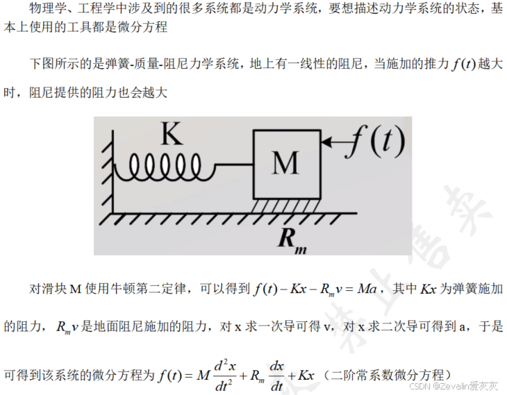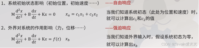 回顾弹簧-质量-阻尼系统模型,其运动受两方面影响,如下所示