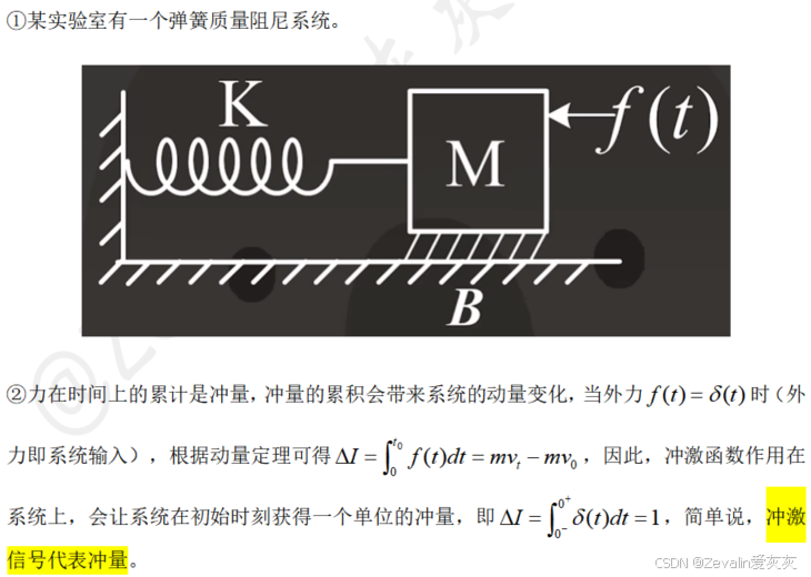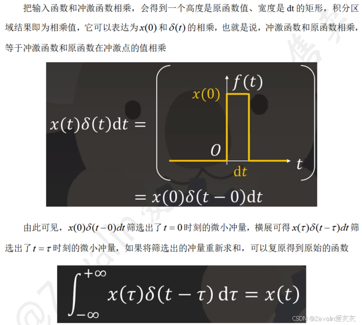(1)连续时间上的冲激函数的数学表达式是一个函数在0时刻的数值为无穷大,在非0时刻数值均为0,,于是有