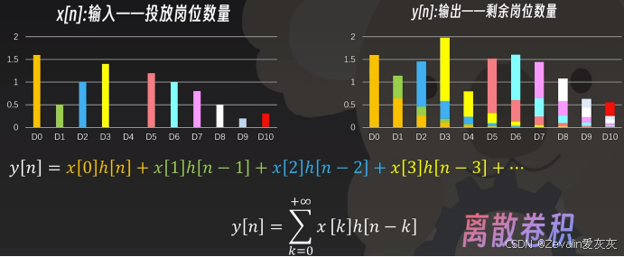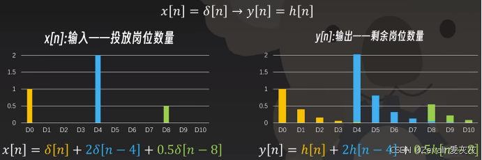 如果现在给定每天任意投放的岗位数量x[n],根据上面得出的规律,即可得出离散卷积公式,如下所示