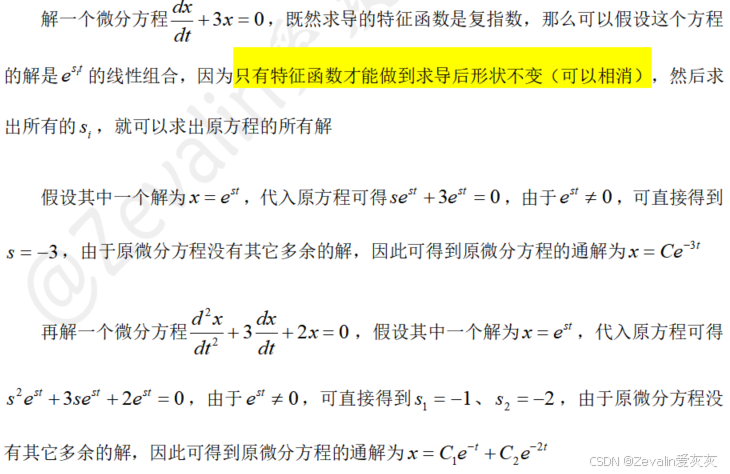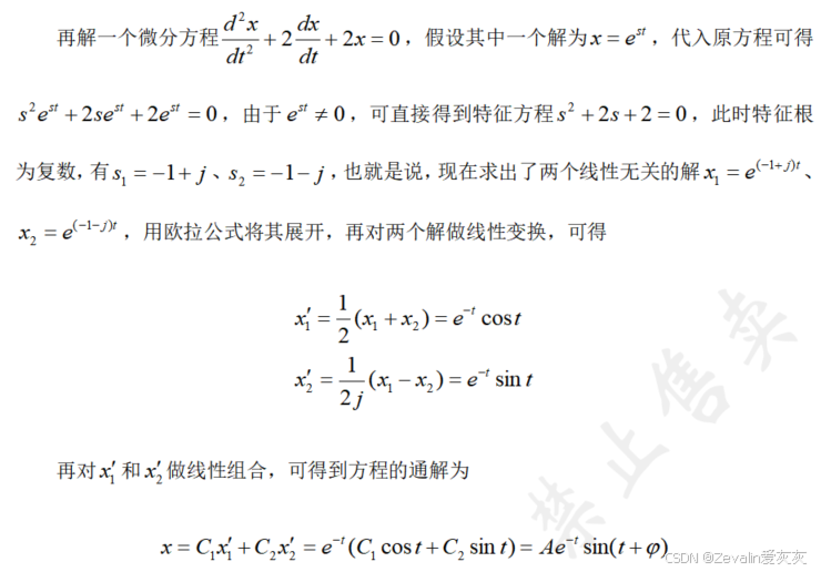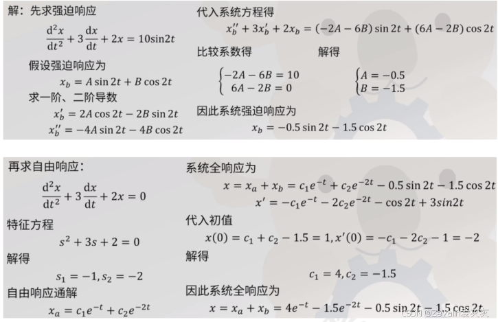 因为系统是线性的,所以自由响应和强迫响应可直接进行线性组合,得出来的方程依然是满足的,这也称为全响应,由此也提供了一种解方程的思路,解非齐次线性微分方程,需要先找到自由响应和强迫响应,最后根据初值确定自由响应解的系数