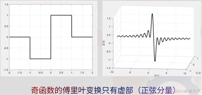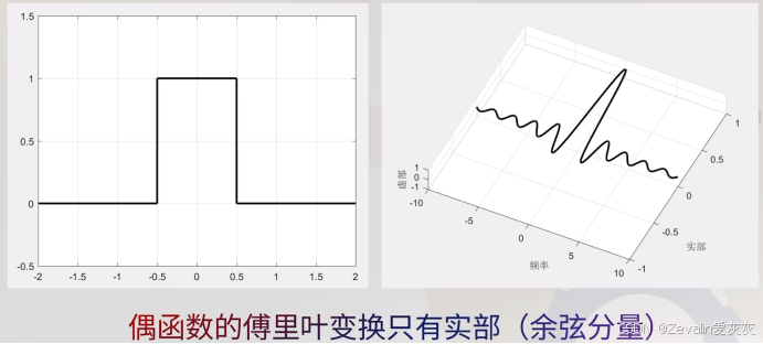 尝试变换几个函数,会发现偶函数的傅里叶变换只有实部,奇函数的傅里叶变换只有虚部