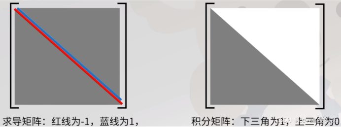 从上面的例子中可得知,差分的本质是一个主对角线两侧排满1和-1,其它位置均为0的矩阵