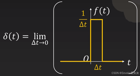 ,可借助极限的思想进行理解,将函数图像与时间轴形成的积分区域视为宽度无限小、高度无限大的面积为1的矩形,于是引出问题——此面积的意义是什么。