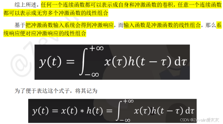 为了便于表达这个式子,将其记为,其中“*”为卷积符号,系统的输出等于系统输入和单位冲激响应的卷积,也就是说,线性系统的冲激相应完全反映了线性系统的特性