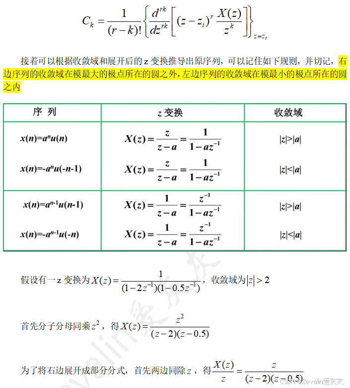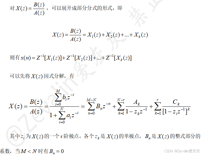 ②部分分式法:将展开成部分分式的形式,然后求每个部分分式的z变换。