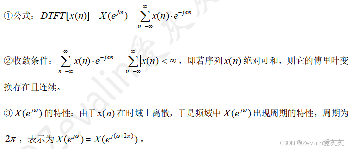 (1)一个离散时间(非周期)信号及其频谱的关系,可以用离散时间信号(序列)的傅立叶变换(简称DTFT)来表示。