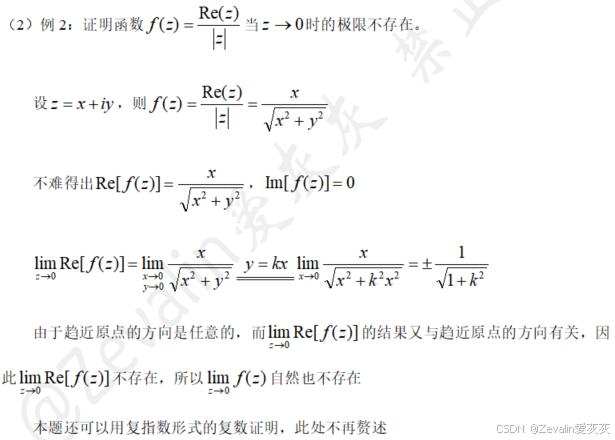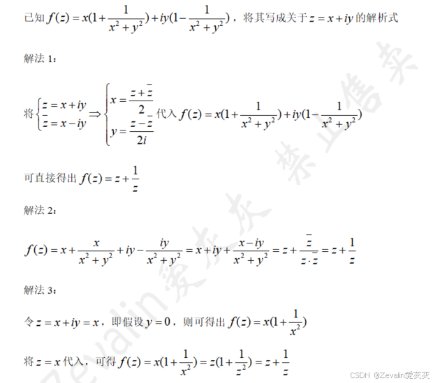 (2)一个复变函数确定了自变量为x、y的两个二元实函数。