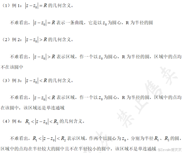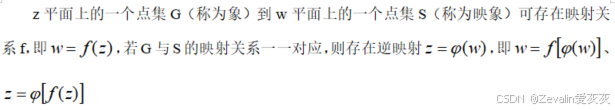(3)由于复变函数涉及四个变量(x、y、u、v),因此不能用一个平面,也不能用三维空间中的几何图形表示复变函数,复变函数的本质是z平面上的一个点集(定义域集合)到w平面上的一个点集(值域集合)的一个映射。