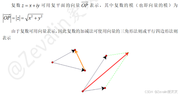 (1)复数可借助复平面表示,复平面的横轴为复数的实部(实轴),纵轴为复数的虚部(虚轴),如下图所示。