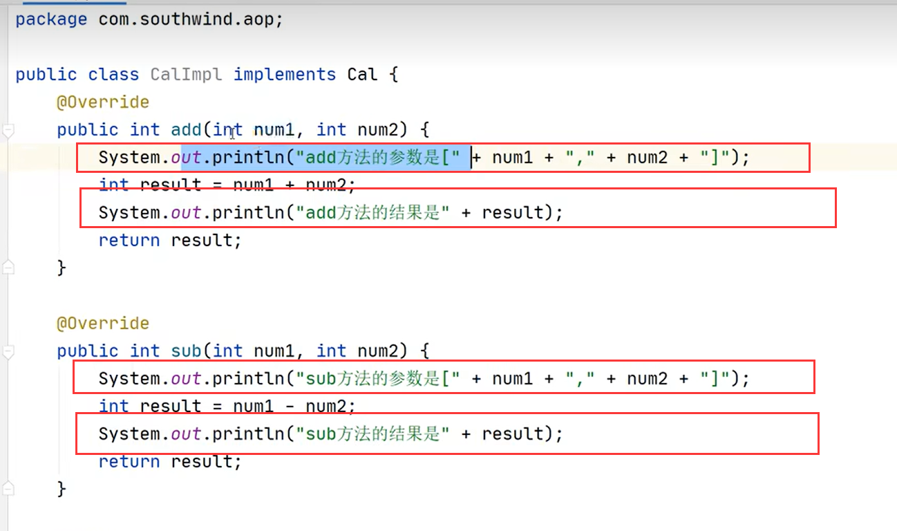 (1)修改被代理的Math类,在Math类的基础上使用注解,注入到spring中