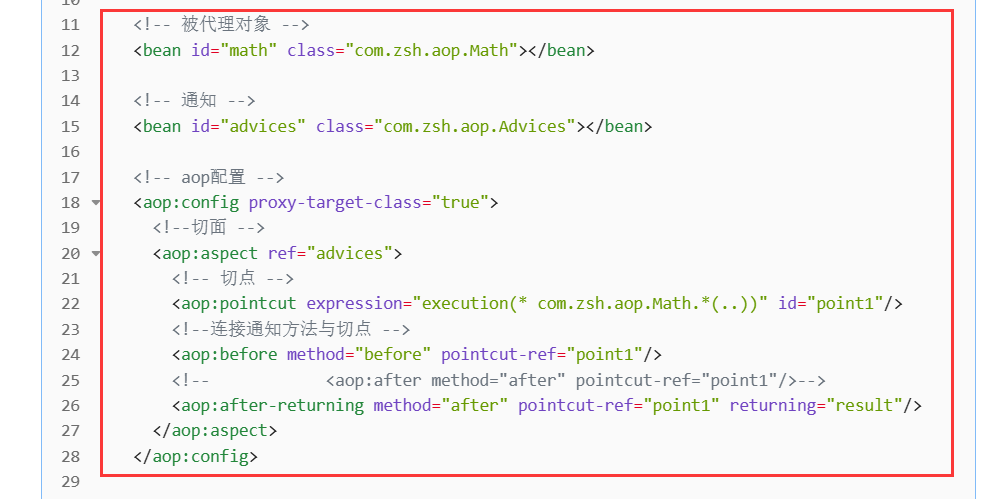 <bean id="math" class="com.zsh.aop.Math"></bean>