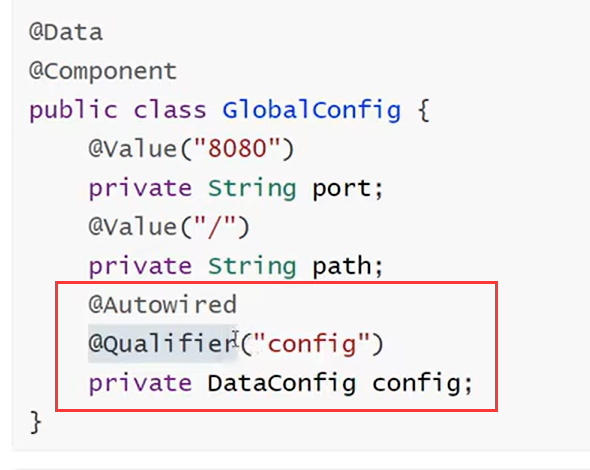 注:@Qualifier("config")与@Component("config")名字保持一致