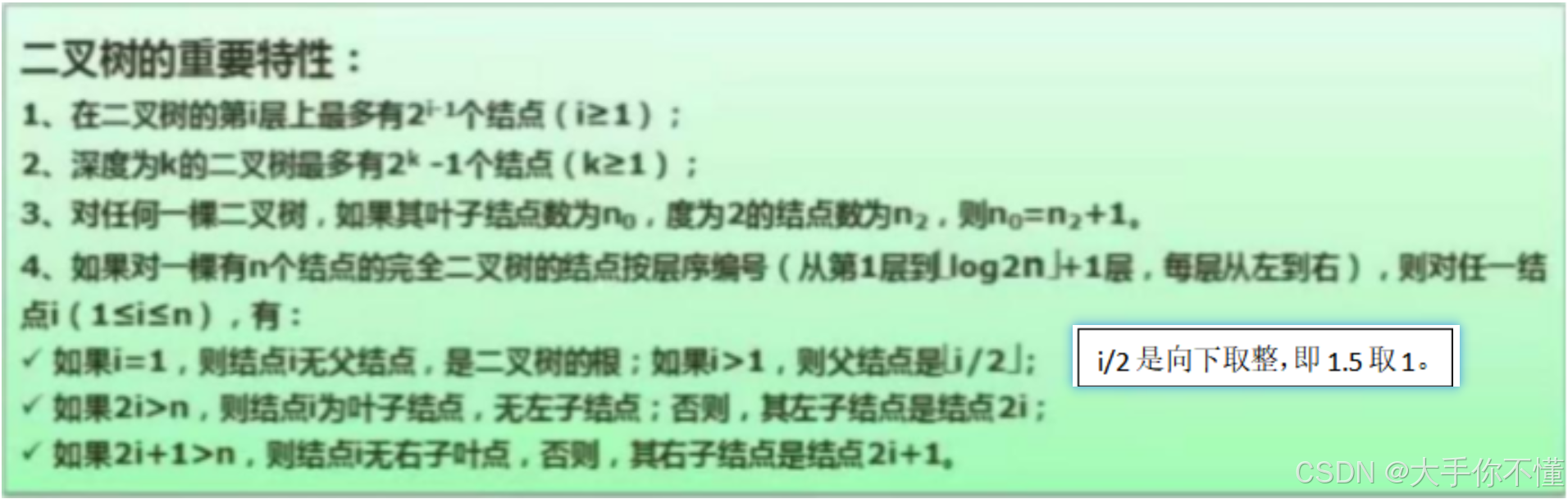 - 4.除第一元素之外,其它数据元素均有唯一的"前驱"。