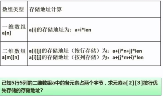 - 所以按行优先的存储地址为:a+(2*5+3) *2=a+13 *2=a+26