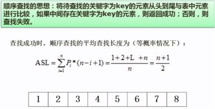 注:n是指比对了n次,也就是第n个元素。上表中平均查找长度为(8+1)/2=4.5