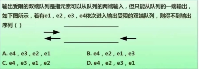 e1→e2→e3→e4的顺序依次插入,但每次插入时可选择放在队列的头部或尾部。逐项分析选项