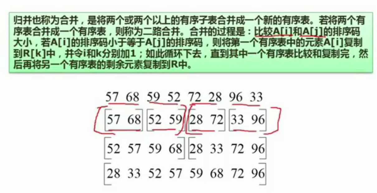 [57,68]、[52,59]、[28,72]、[33,96]。这些是长度为2的子数组,说明在拆分阶段,数组被分成了多个“小块”。第二步:对小数组排序 这些长度为2的子数组已经是有序的(因为1个元素天然有序,2个元素只需比较一次):