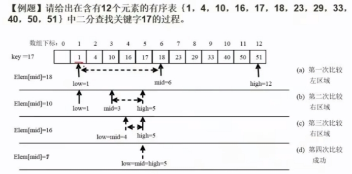 注:若中间位置mid=(low+high)/2=小数的话,直接取整数,例6.5=6