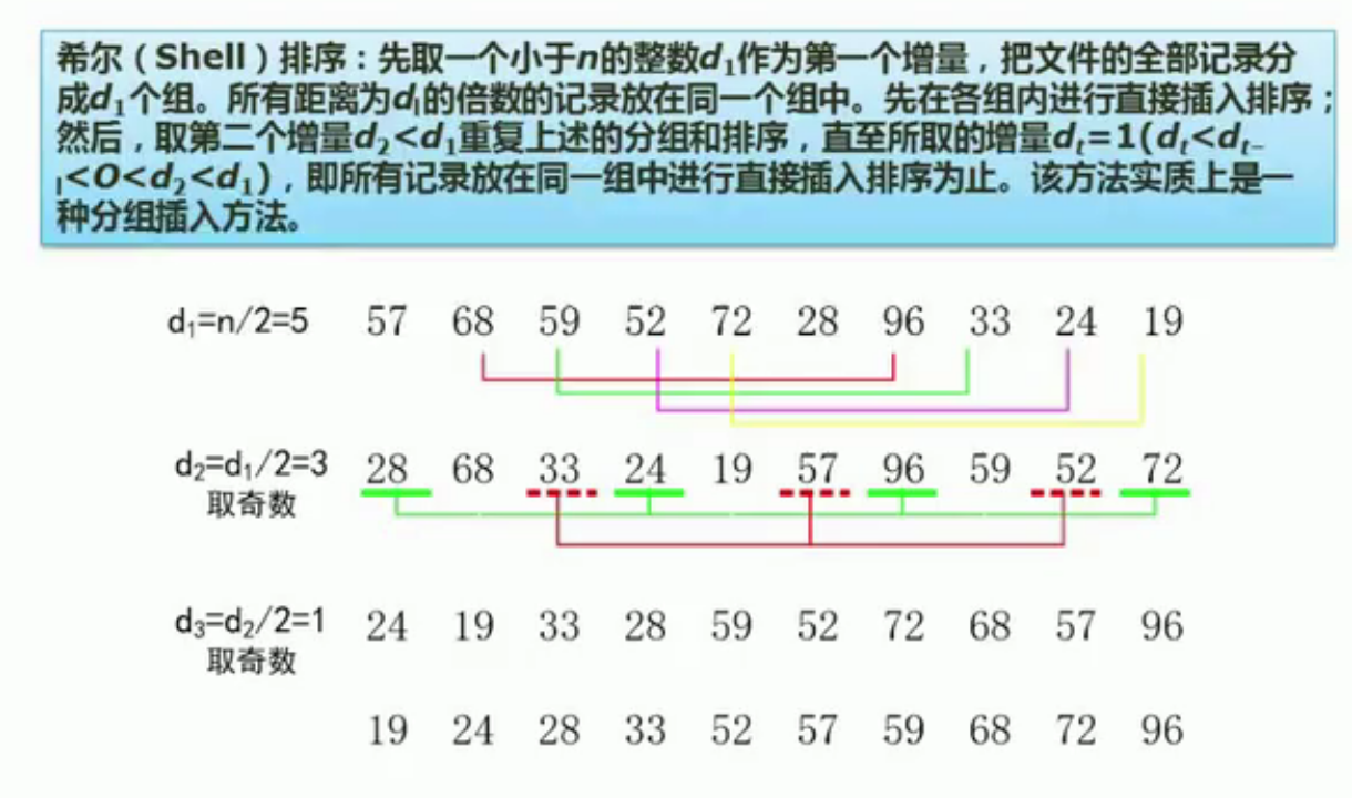 是插入排序的一种,但比直接插入排序效率要高:简单来说就是分组进行【直接插入排序】
