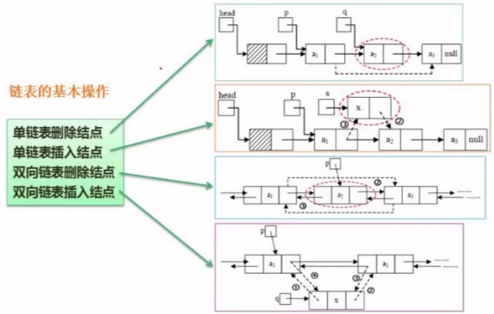 (1) 如图所示,删除a2,q指向a2。P指向a1。