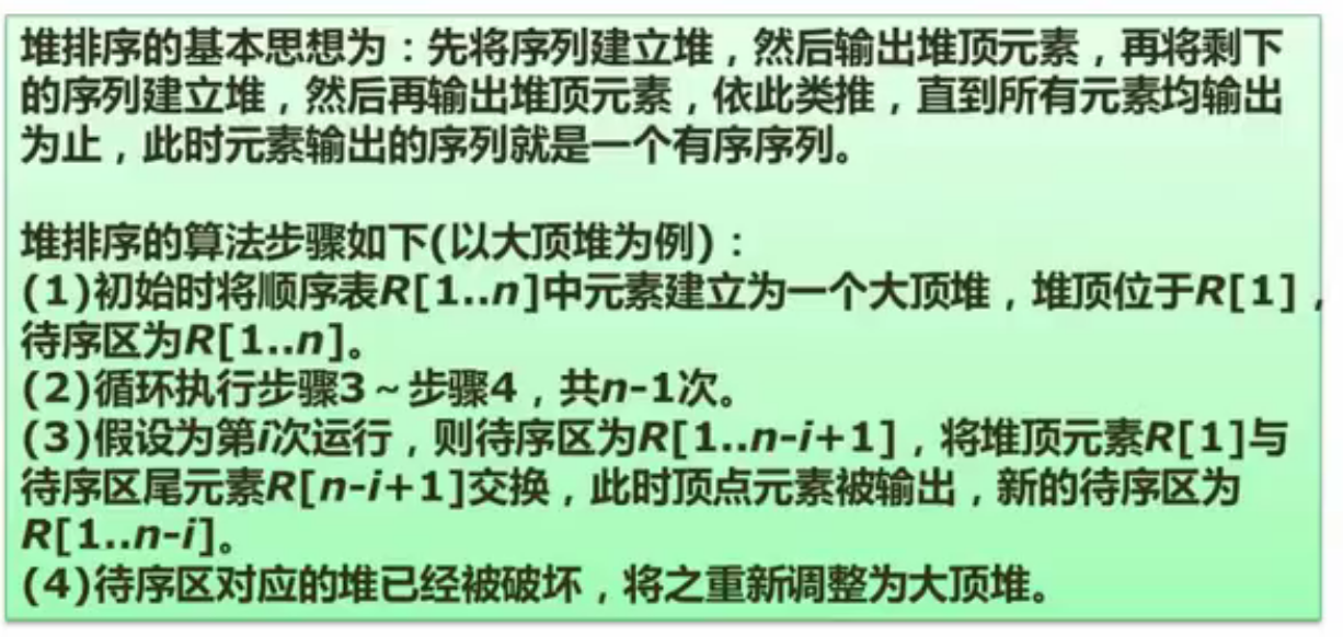 堆排序是一种基于堆数据结构的排序算法,利用堆的“堆序性质”(大顶堆或小顶堆)来实现排序。