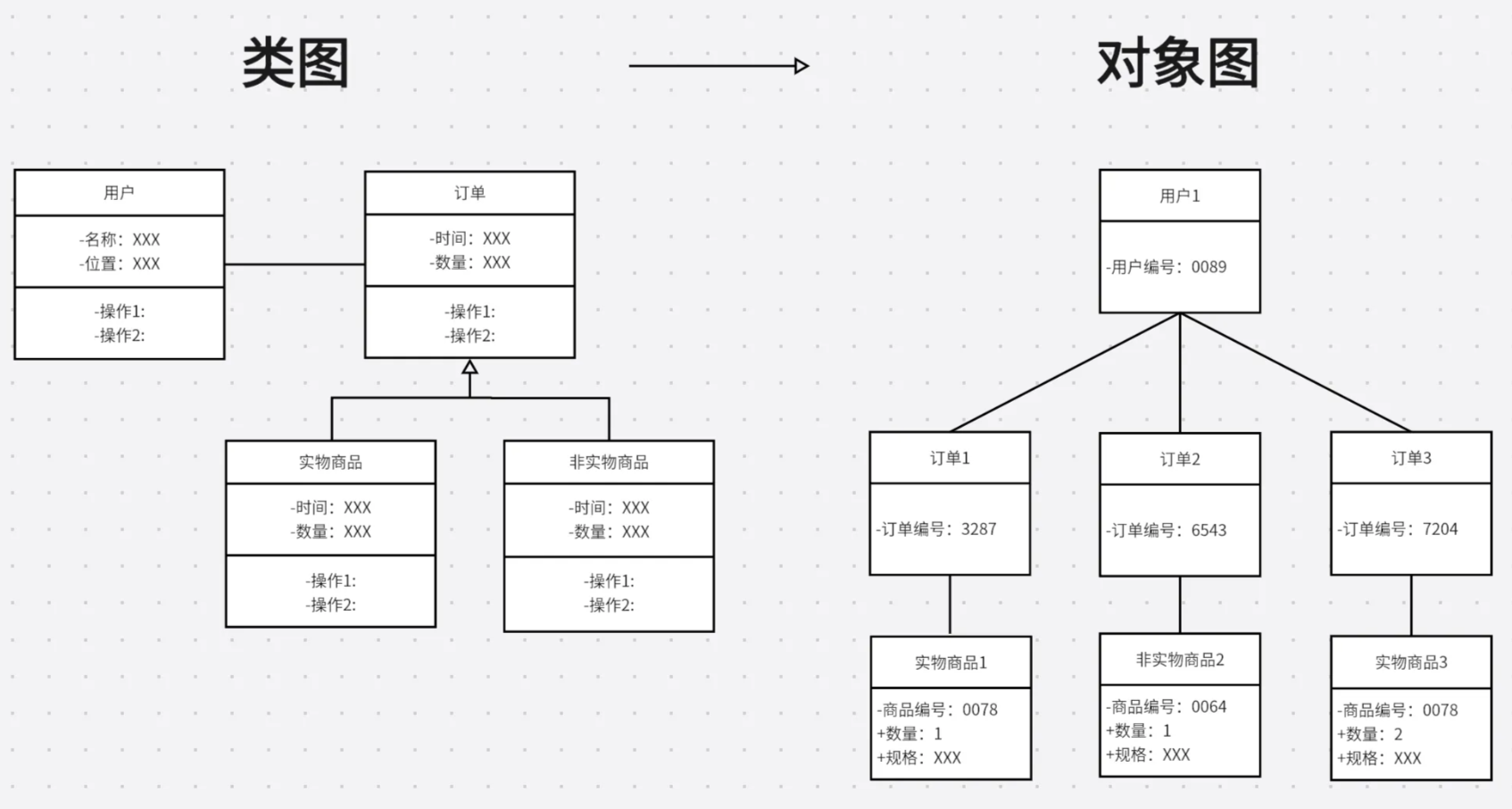 - 比如用户类是个“模板”,而张三(手机号138xxxx)就是一个具体的用户对象。