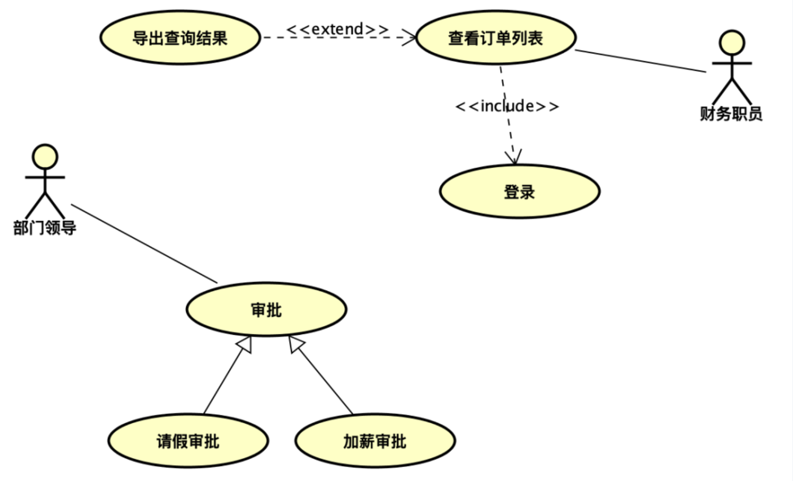 - 椭圆代表“用例”(用户要做的事,比如登录系统、下订单、查物流);