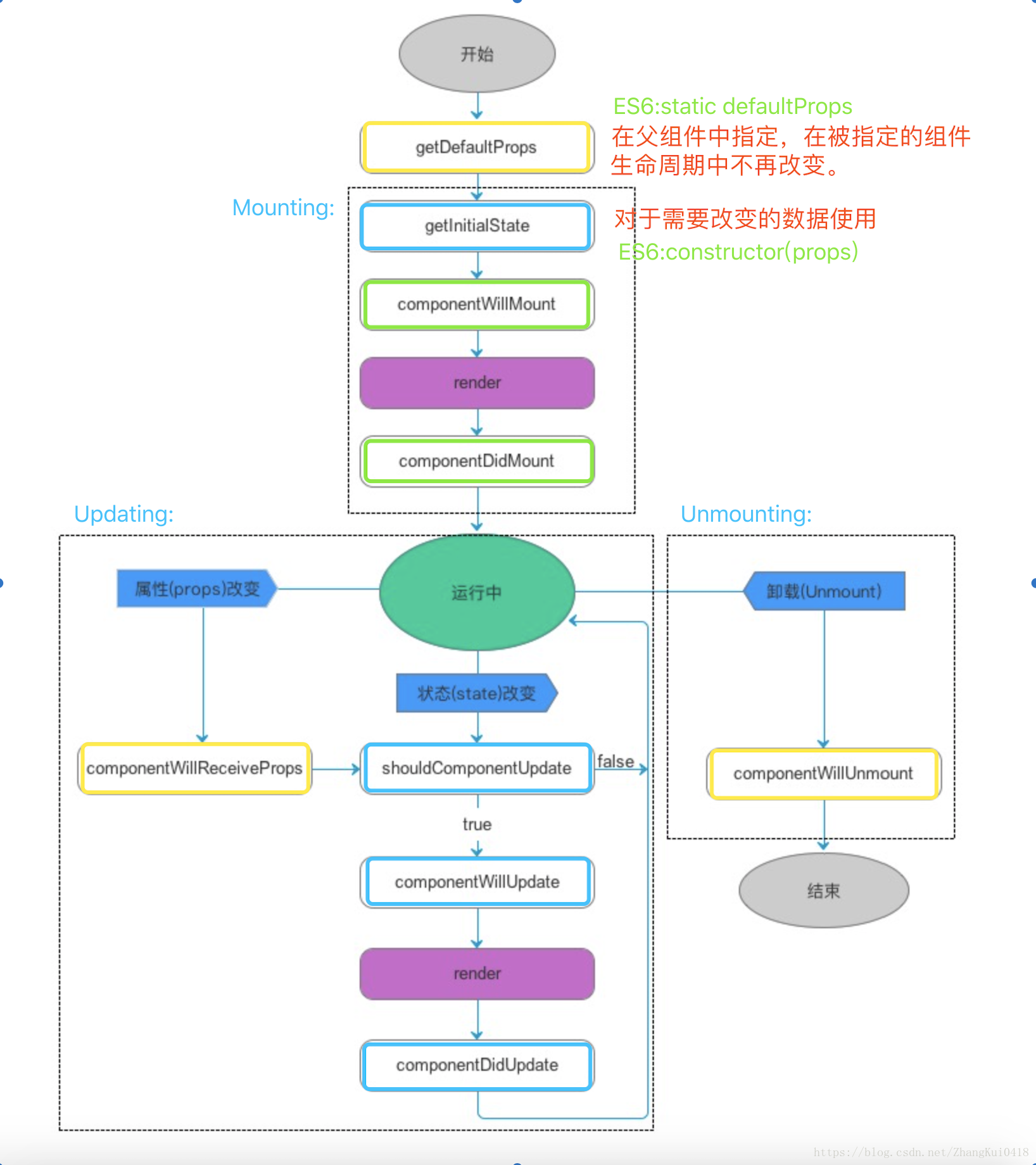 componentWillReceiveProps当props发生变化时执行,初始化render时不执行,在这个回调函数里面,你可以根据属性的变化,通过调用this.setState()来更新你的组件状态,旧的属性还是可以通过this.props来获取,这里调用更新状态是安全的,并不会触发额外的render调用