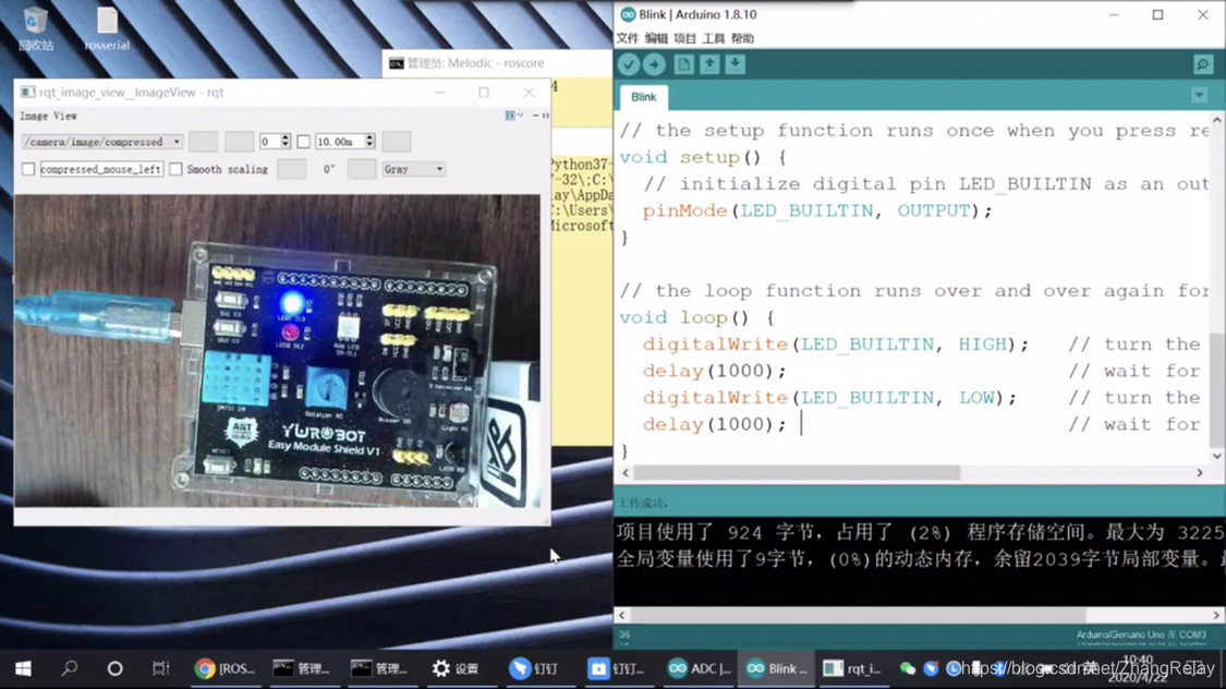 上图为直播截图,左侧为开发板硬件,灯亮起,右侧为对应程序代码