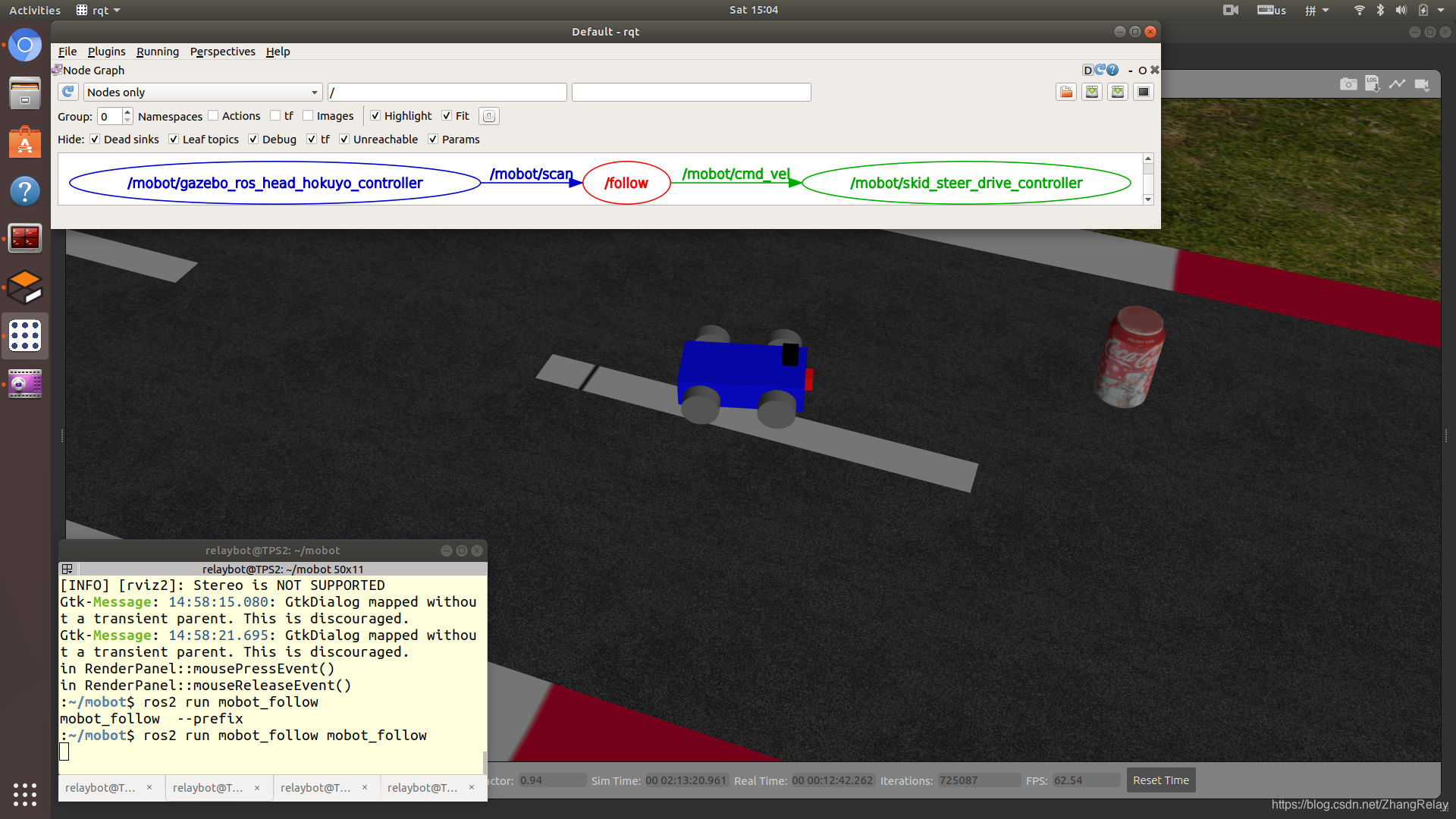 ROS2和Gazebo9中mobot物体跟随仿真测试