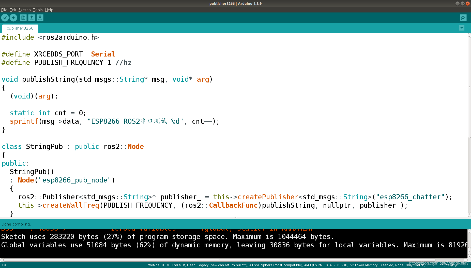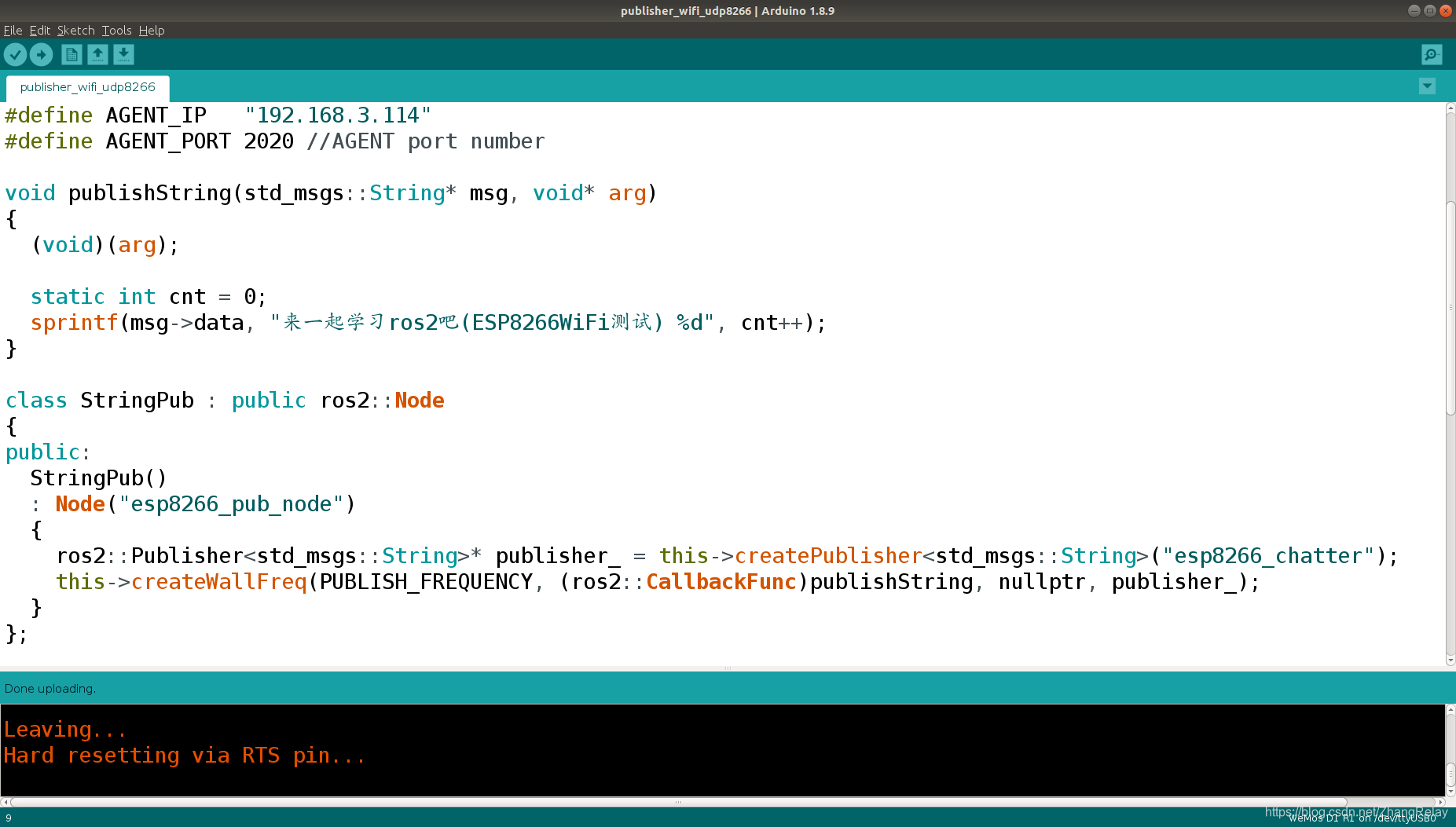 ESP8266与ROS2连接与ESP32几乎一致,但是由于资源有限,无线并不稳定,串口正常,具体参考: