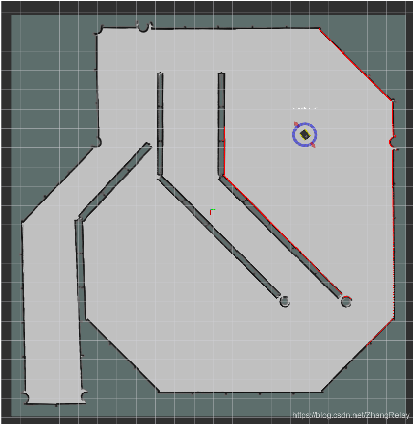 随着机器人的移动,应该会看到灰色的静态地图(地图主题)在增长。当Cartographer算法试图定位机器人时,地图中可能会有离散的跳跃。