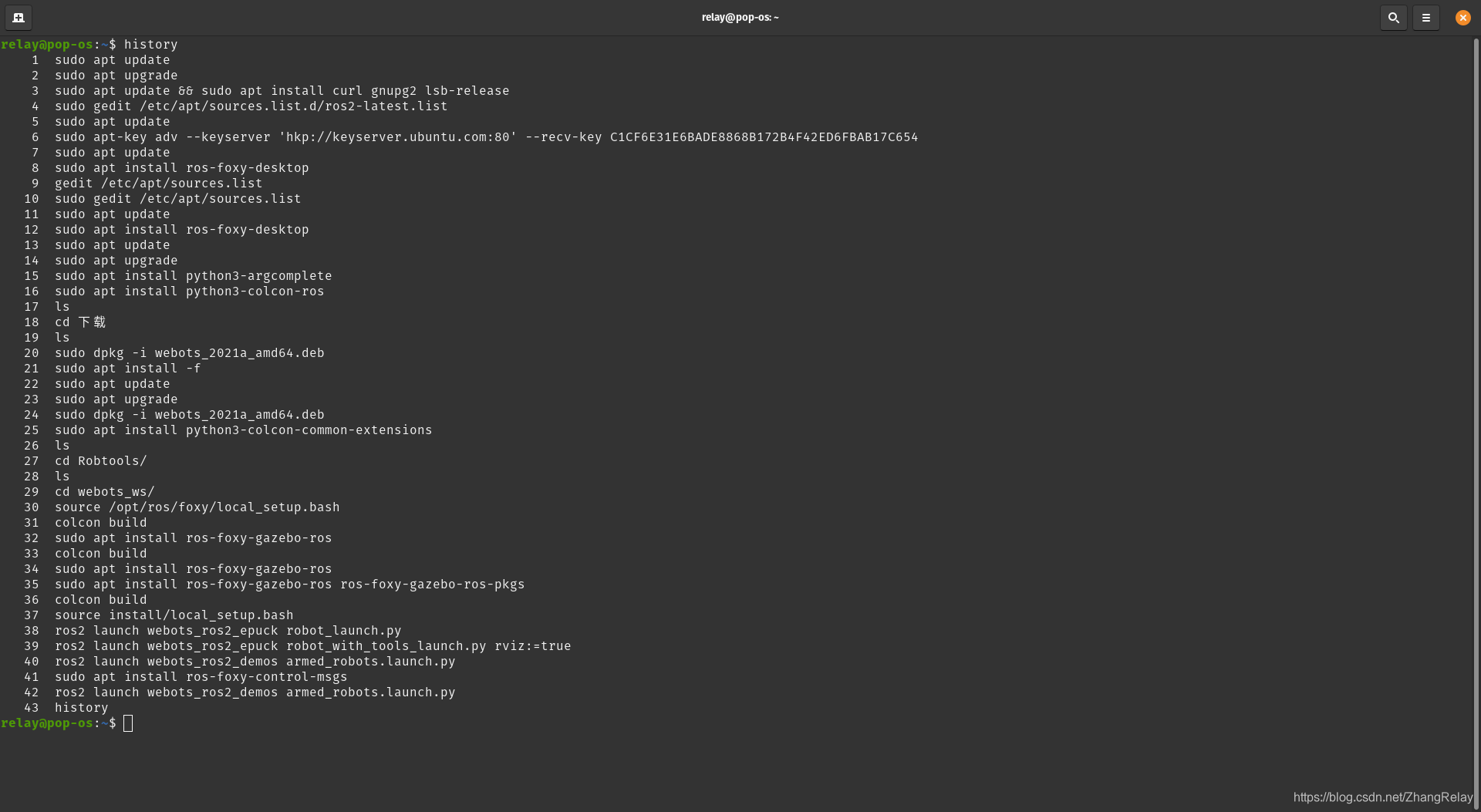 博主在Pop_OS 20.04上安装了与Ubuntu相同版本的ROS2 Foxy和Webots 2019a,过程中未遇到问题。系统壁纸具有B站风格。详细记录了从更新系统、添加源、安装软件到运行案例的全部指令,包括安装ros2、webots、相关扩展和依赖,并成功运行了几个ros2相关演示。