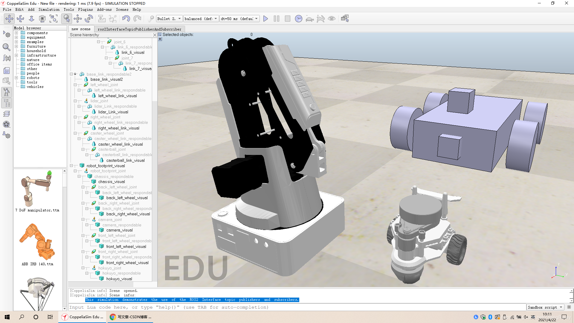 CoppeliaSim+ROS2+Windows的教程晚些时候测试后推出,欢迎各位朋友多多提建议!感谢感恩。