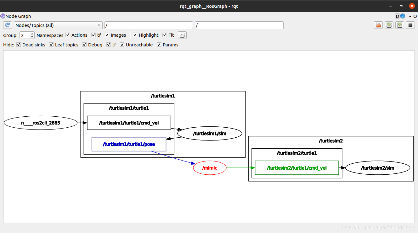 最后一个节点也来自turtlesim包,但是一个不同的可执行文件:mimic。