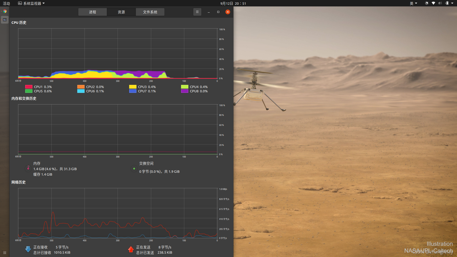 以最最最简单turtlesim为例,避免太多复杂测试,方便一眼看穿,这里用系统监视器。