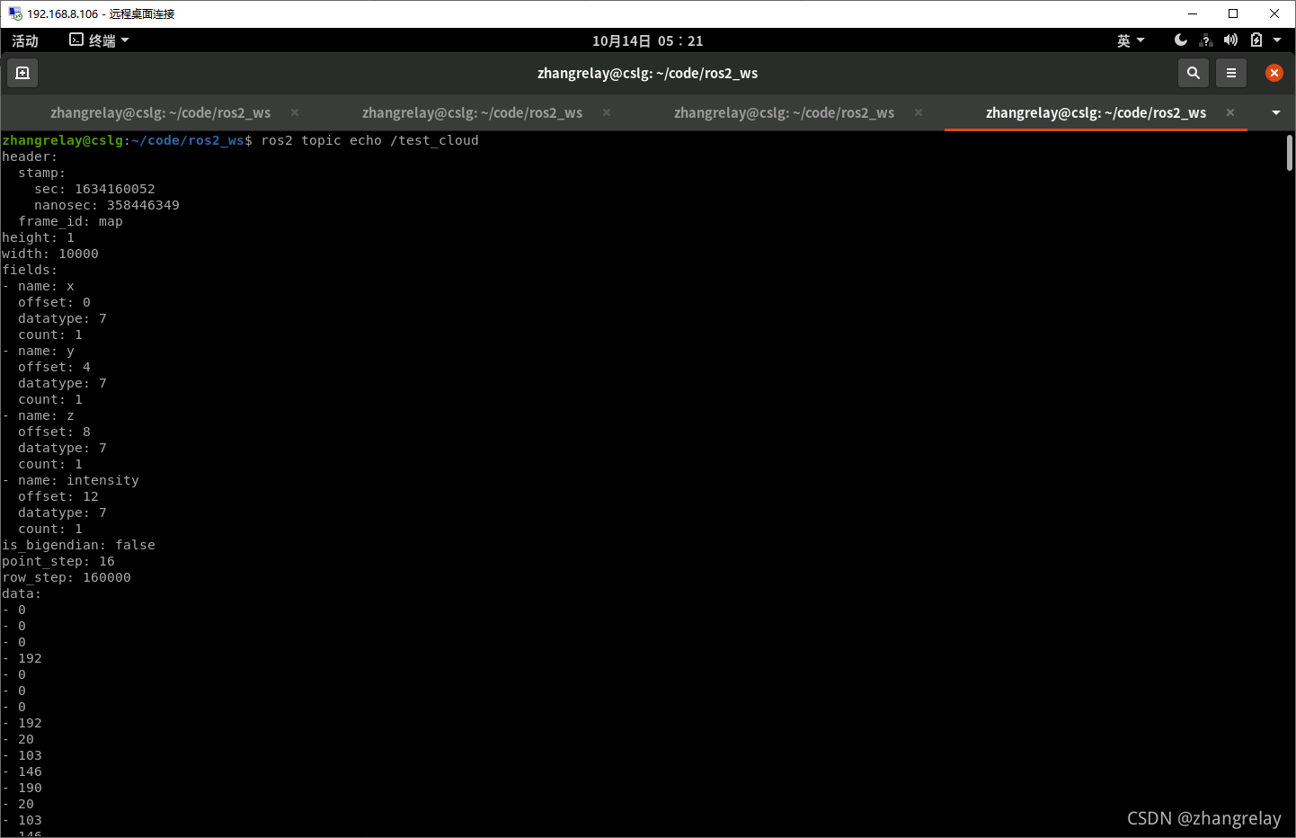 zhangrelay@cslg:~/code/ros2_ws$ ros2 topic echo /turtle1/pose