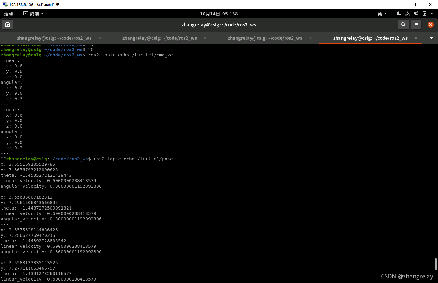zhangrelay@cslg:~/code/ros2_ws$ ros2 topic echo /turtle1/cmd_vel