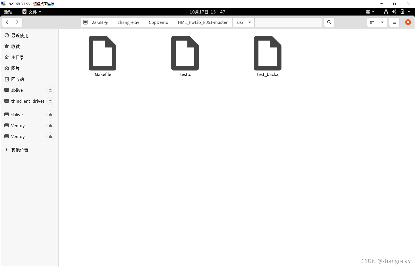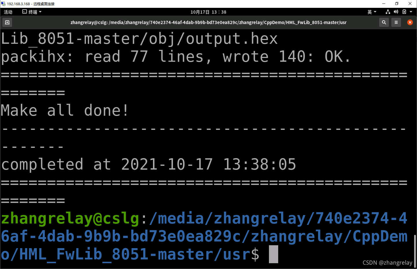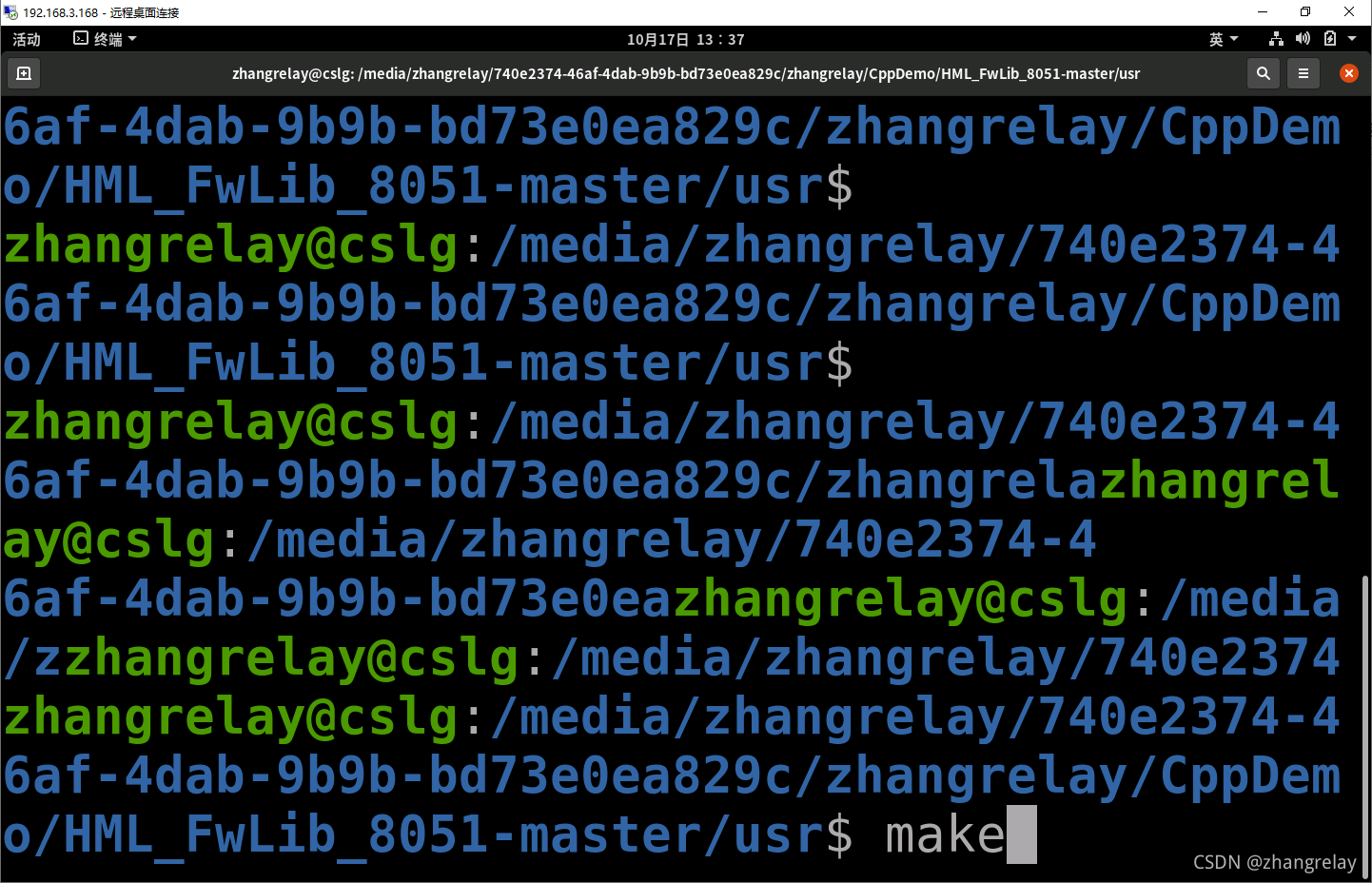这里以/media/zhangrelay/740e2374-46af-4dab-9b9b-bd73e0ea829c/zhangrelay/CppDemo为例。*具体路径有所不同。