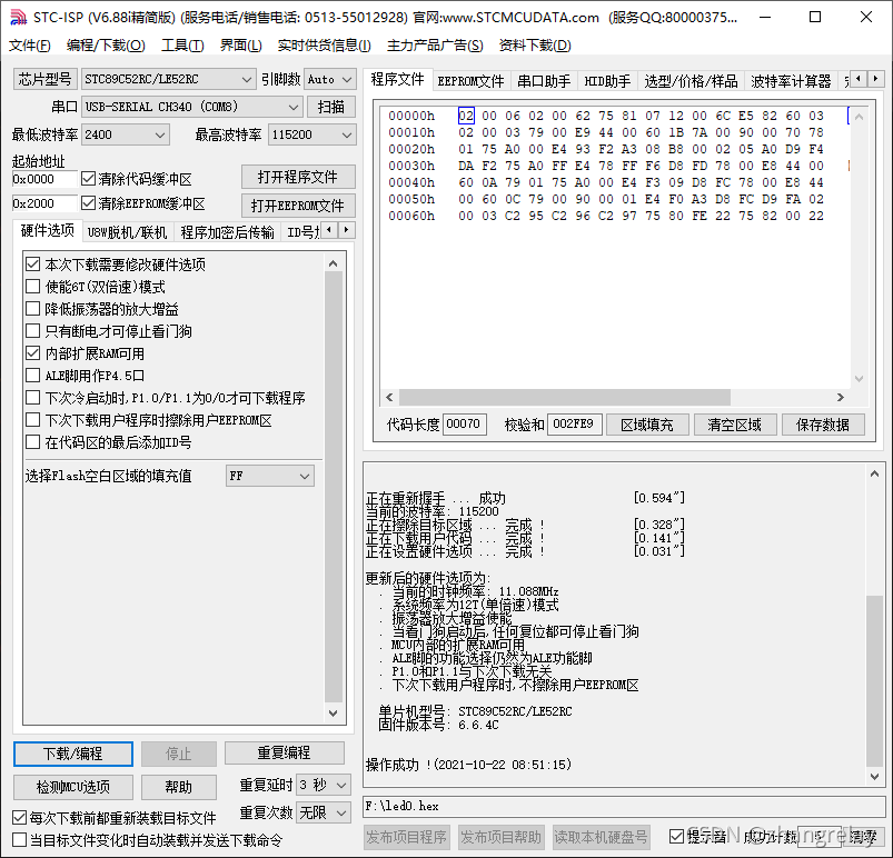 本文介绍了如何使用STC-ISP工具写入一个点亮LED的程序,并提供了将ihx文件转换为hex或bin文件的命令。通过这个过程,读者可以学习到嵌入式开发中的基本操作,以及如何使用stcgal进行愉快的开发。