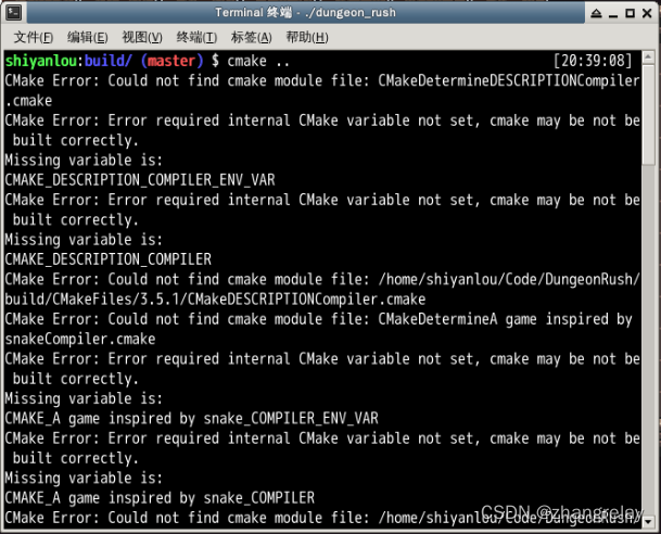 CMake Error: Could not find cmake module file: /home/shiyanlou/Code/DungeonRush/build/CMakeFiles/3.5.1/CMakeA game inspired by snakeCompiler.cmake