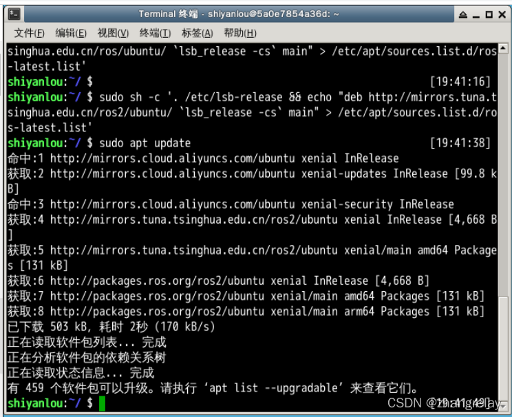 5 sudo sh -c '. /etc/lsb-release && echo "deb http://mirrors.tuna.tsinghua.edu.cn/ros2/ubuntu/ `lsb_release -cs` main" > /etc/apt/sources.list.d/ros-latest.list'