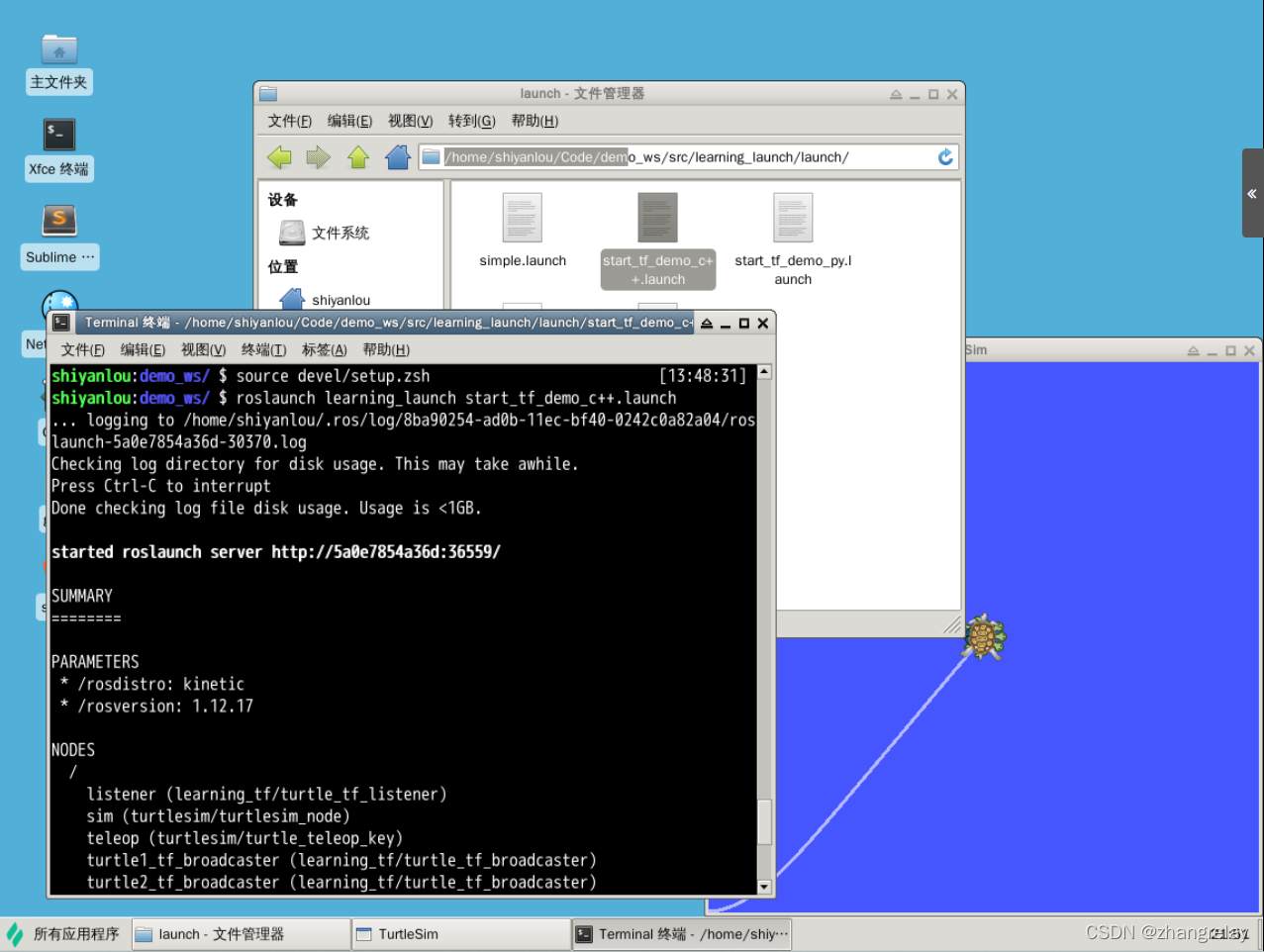 shiyanlou:demo_ws/ $ roslaunch learning_launch start_tf_demo_c++.launch