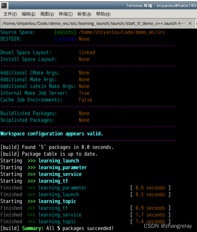 Devel Space: [exists] /home/shiyanlou/Code/demo_ws/devel