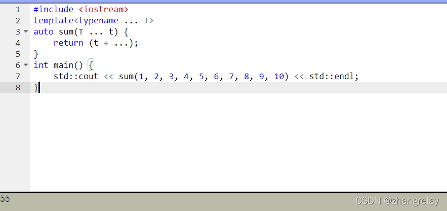 std::cout << sum(1, 2, 3, 4, 5, 6, 7, 8, 9, 10) << std::endl;
