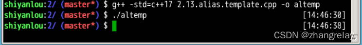 shiyanlou:2/ (master*) $ g++ -std=c++17 2.13.alias.template.cpp -o altemp