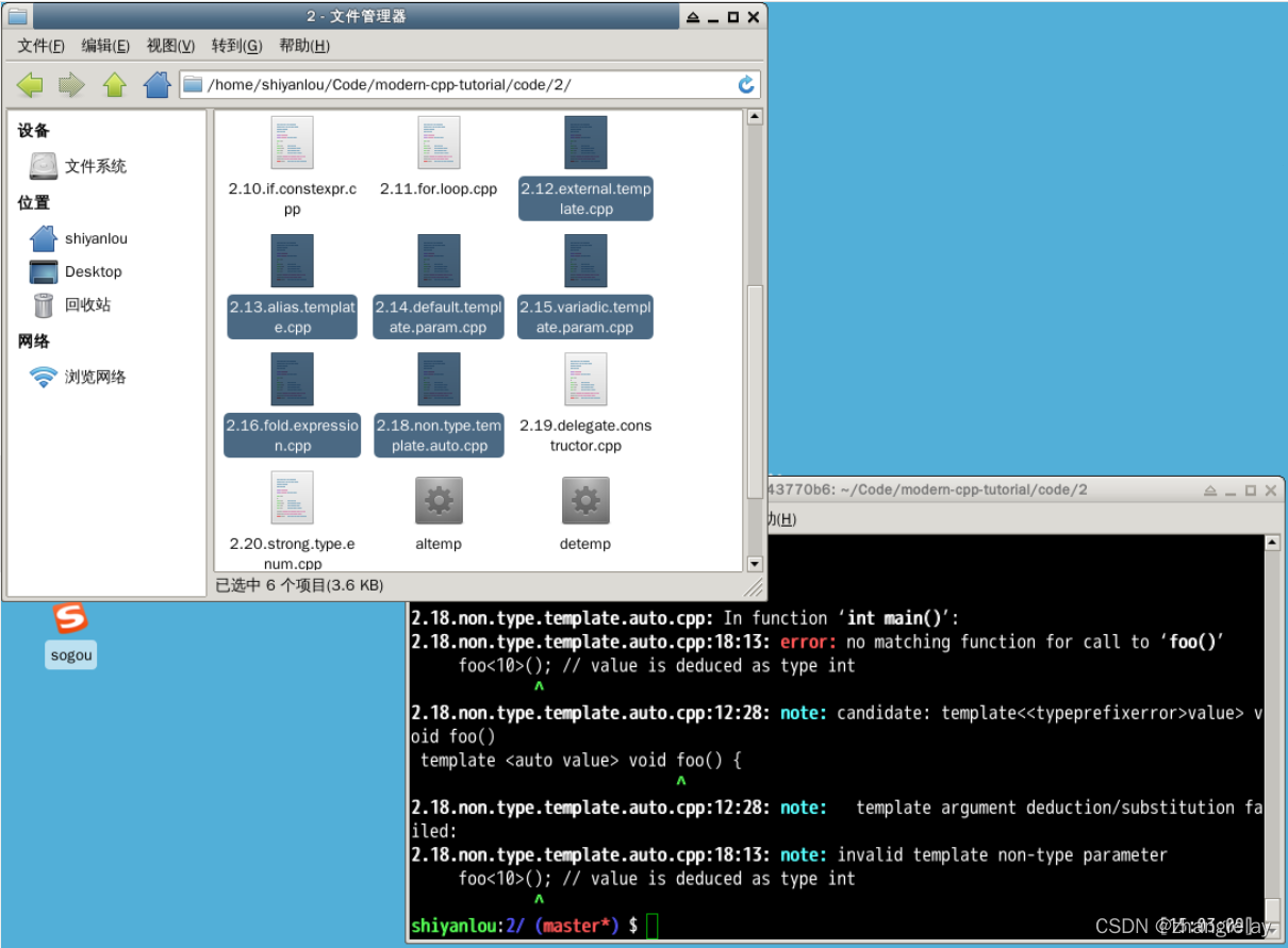 shiyanlou:2/ (master*) $ g++ -std=c++17 2.18.non.type.template.auto.cpp -o notemp
