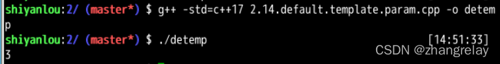 shiyanlou:2/ (master*) $ g++ -std=c++17 2.14.default.template.param.cpp -o detemp