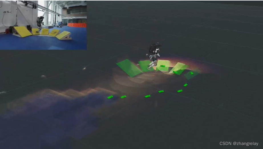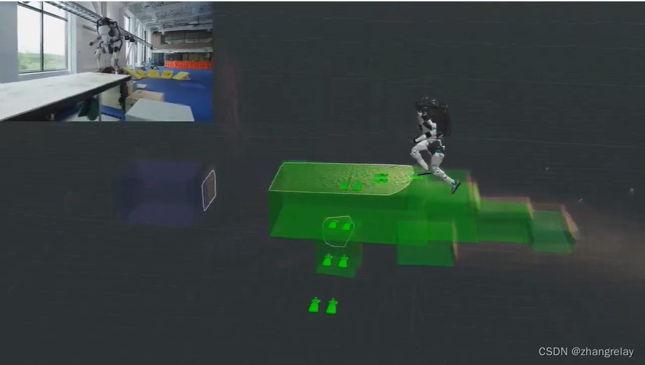 移动得更快(或更灵巧)需要在边缘进行更快的感知计算。下面的 Atlas 使用感知来识别、导航和绕过障碍物。边缘感知是在变化的环境下导航的关键,人类世界中最多的. Atlas 利用飞行时间深度相机以 15 Hz 的频率生成环境点云。点云是一个大而密集的距离测量集合,需要在边缘(直接在机器人中)进行处理以实现平滑的行为,从而减少从传感器到执行器的任何延迟。通过利用硬件加速,Atlas 的感知从该点云中提取表面,然后用于以十分之一毫秒的数量级计划动作。这一切都归功于硬件加速.